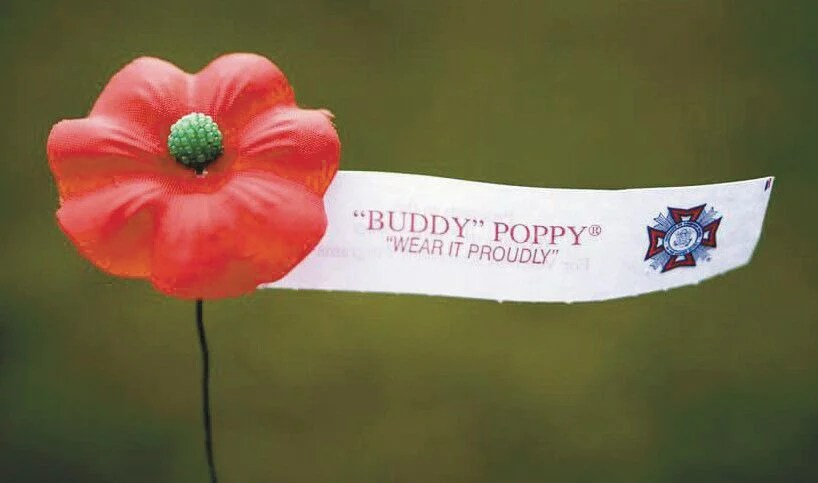 Based on the poem In Flanders Field, written by Lt. Col. John McCrae, MD, in WWI, the Buddy Poppy is a small silk flower. Made by hospitalized veterans in VA Medical Centers throughout the nation, sales of the Buddy Poppy have raised millions of dollars for veterans and their families.